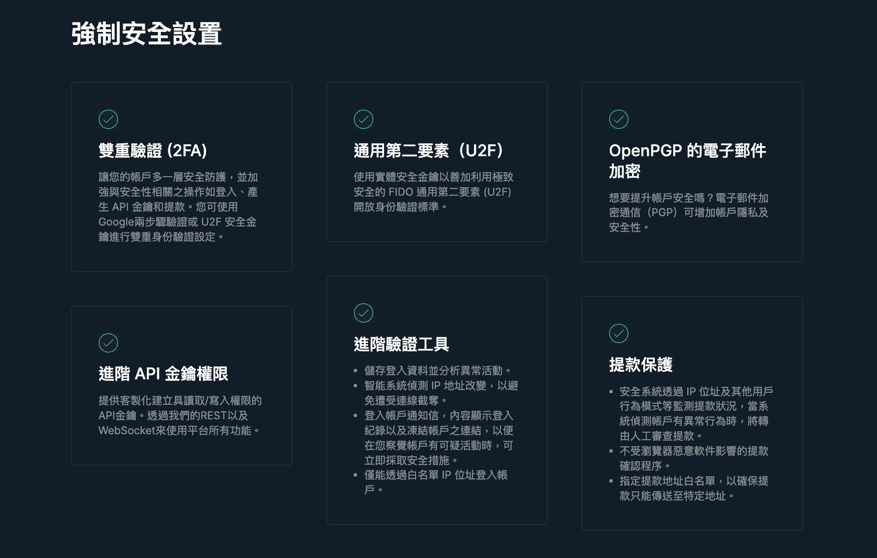 資產安全與嚴謹上幣審核:在資產安全方面,Bitfinex 經歷多輪牛熊市場考驗,至今保持良好紀錄。平台對於新上架的代幣採取審慎的審核機制,不會隨意列表高風險的山寨幣,只專注主流、有長期價值的項目,為用戶資產多加一道保障。