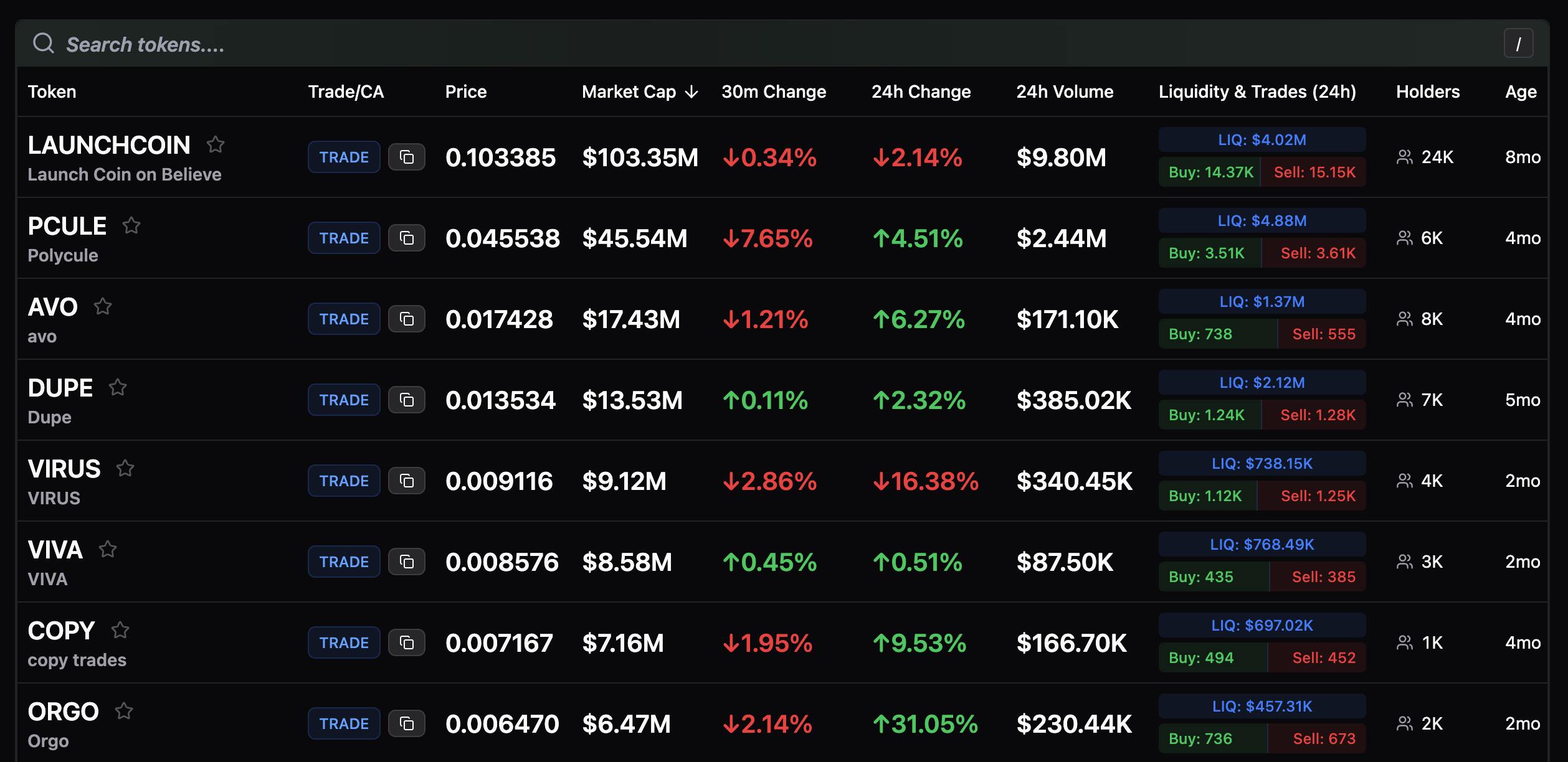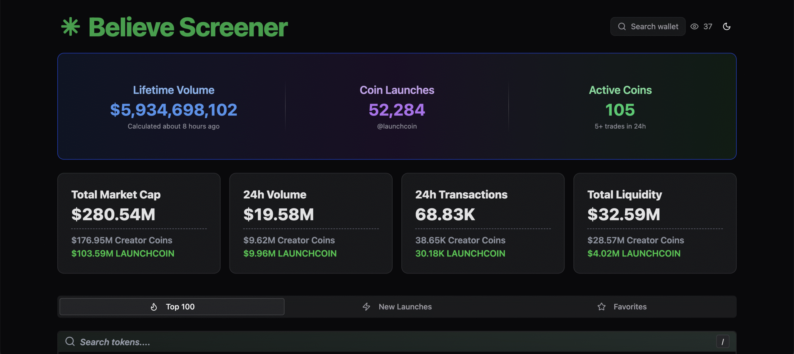 順帶一提,Believe 生態比較好用的工具有:Believe Screener 和 Pantheon(這款在下方幣種介紹有提及,主要是用追蹤 Believe 生態上的各種代幣)。