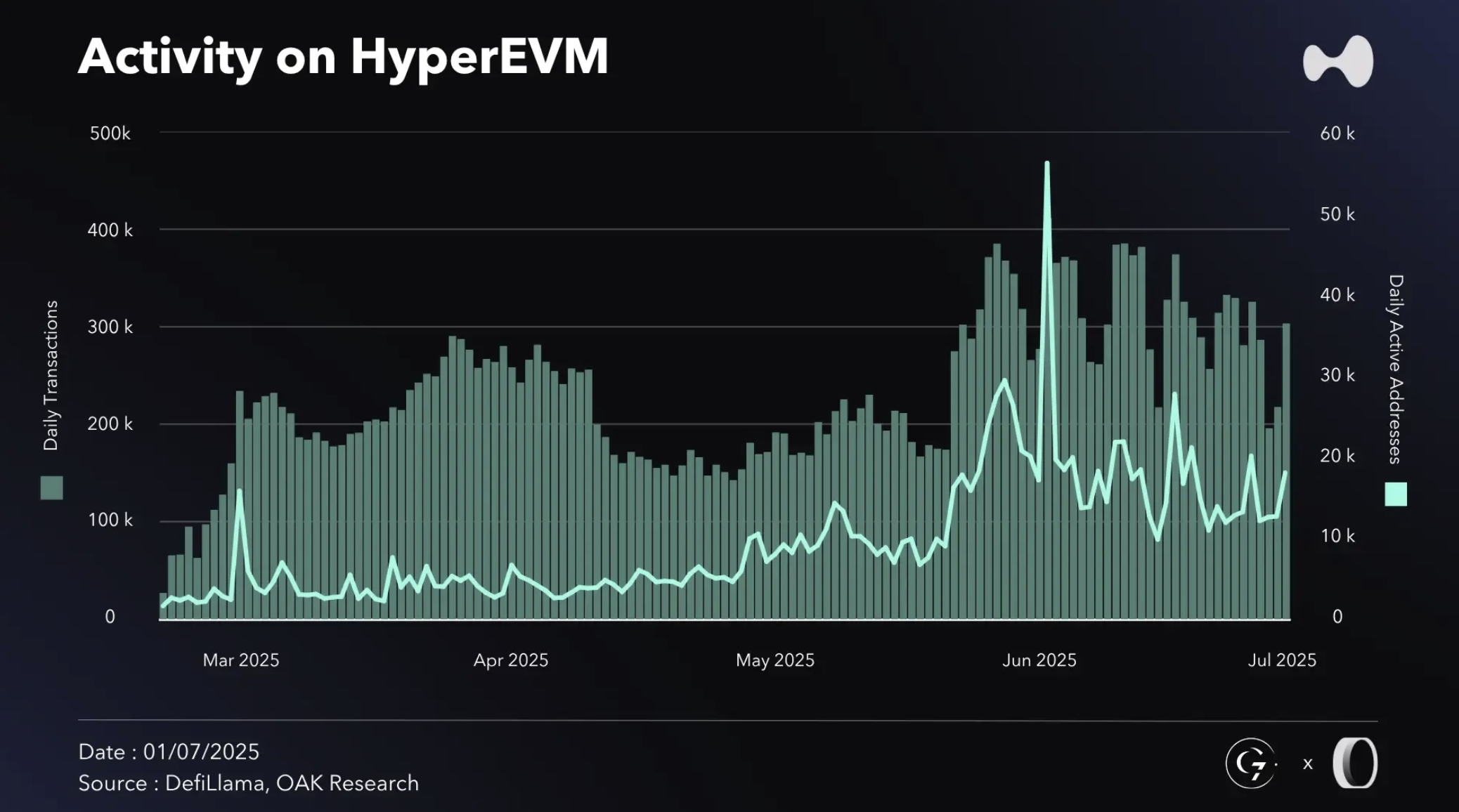 根據 OAK Research 研究報告,Hyperliquid 上的獨立地址數從 2025 年年初的約 29.1 萬增加到 6 月底超過 51.8 萬,短短半年增長約 78%。而到目前 9 月中為止,累計註冊地址已突破 95 萬大關。如果再算上未註冊但通過聚合器訪問的用戶,實際用戶基數可能更高。這種成長速度在 DeFi DEX 中是前所未見的。